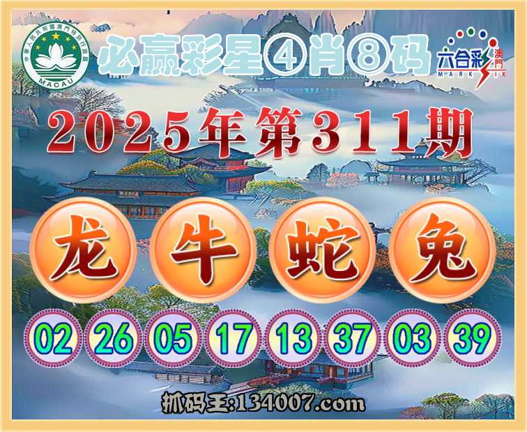 311期:【必赢彩星】 🤡④肖⑧码🤡【龙牛蛇兔】开:蛇37准