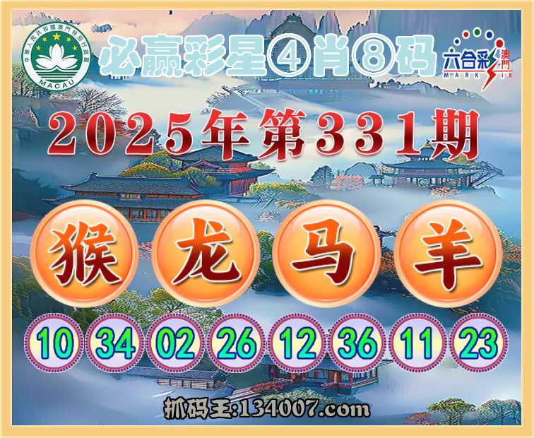 331期:【必赢彩星】 🤡④肖⑧码🤡【猴龙马羊】开:龙26准